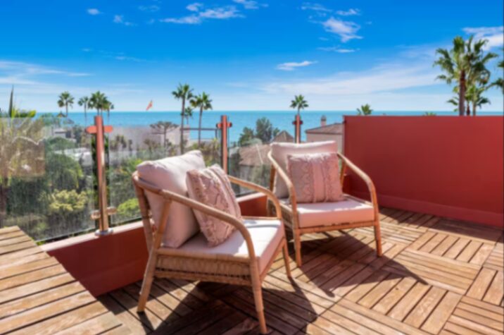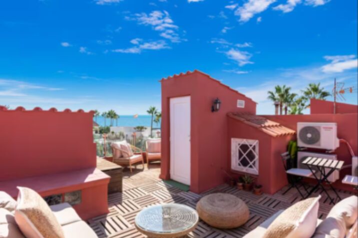 Experience quintessential Mediterranean coastal luxury at this Beachfront Escape in Marbella — a stunning seaside townhouse that blends contemporary comfort with unbeatable location. Situated right on the golden sands of Las Dunas de Marbella, this exquisite 3-bedroom residence offers sweeping sea and mountain views, direct beachfront access, and a beautifully furnished terrace where you can soak in sunrise breakfasts or sunset cocktails with the sound of waves in the background. Step outside and enjoy the refreshing communal swimming pool and lounging areas, perfect for cooling off after a day in the sun or unwinding beneath the Spanish sky.
