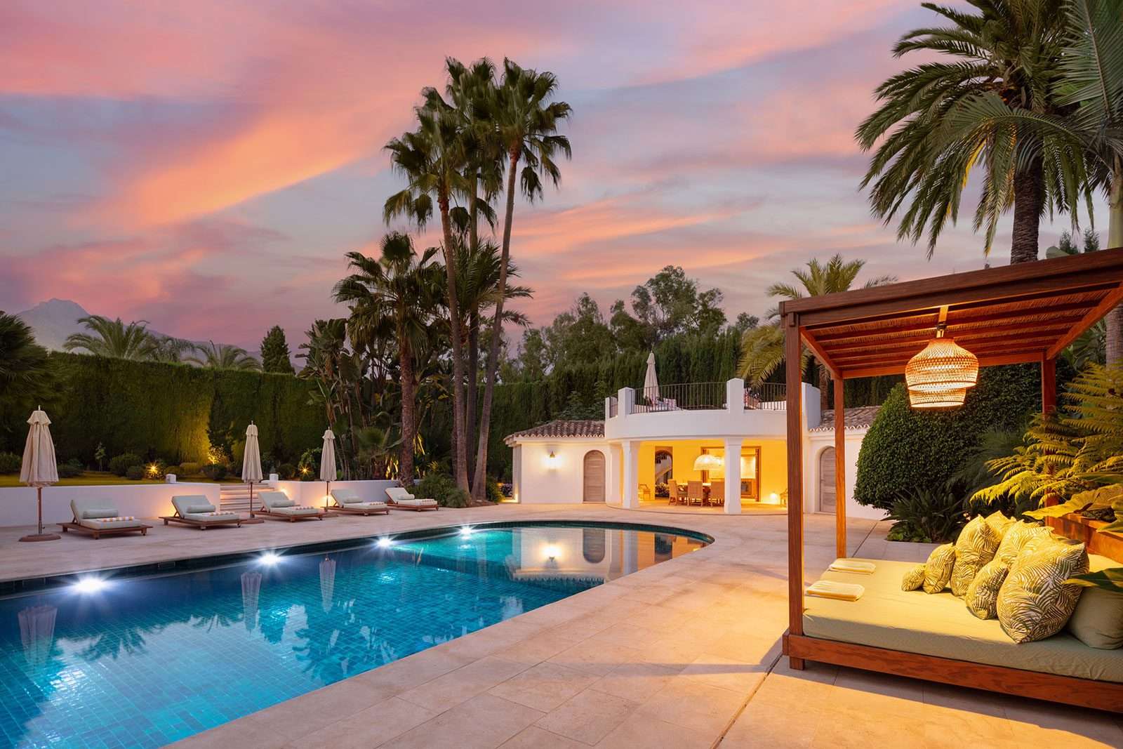 Nestled in the prestigious enclave of Los Verdiales on Marbella’s Golden Mile, this magnificent villa redefines Mediterranean luxury living just 50 meters from the sea and within walking distance of Marbella’s finest dining, nightlife, and concierge-level amenities. Spacious yet intimate, the residence spans 1,145 m² of exquisitely designed indoor space on a sprawling 4,200 m² tropical estate, offering an idyllic retreat for families, friends, and discerning guests alike. With panoramic views of La Concha Mountain and the sparkling Mediterranean just steps away, every moment here feels like a postcard come to life.
