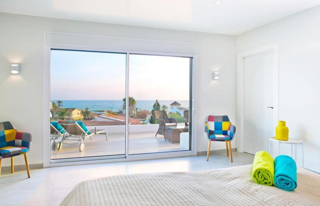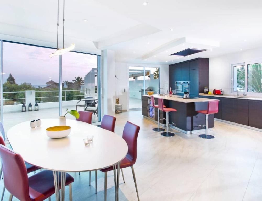 Experience unparalleled luxury at this beachfront Extravagant 8-BDRM Villa in Marbella — a stunning, fully renovated estate that blends modern Scandinavian design with Mediterranean glamour. Set mere steps from the white sandy shore of Real de Zaragoza Beach, this spacious villa offers mesmerizing panoramic sea views from virtually every room, while a massive 350 sqm terrace invites you to soak up the sun or sip cocktails by the heated infinity pool with its built-in pool-bar. With room for up to 16 guests across 8 elegantly styled bedrooms, each with en-suite bathrooms, and expansive indoor and outdoor living areas, this villa is crafted for unforgettable gatherings with family and friends.
