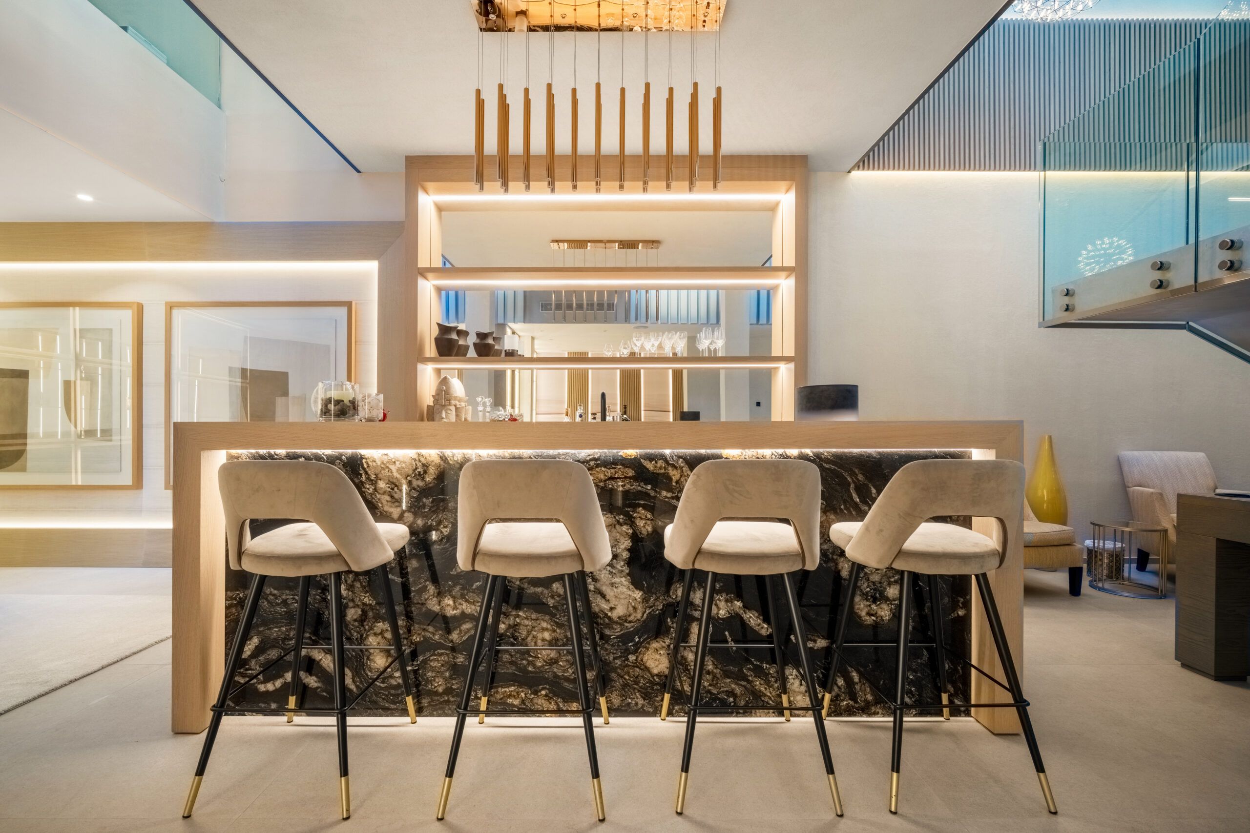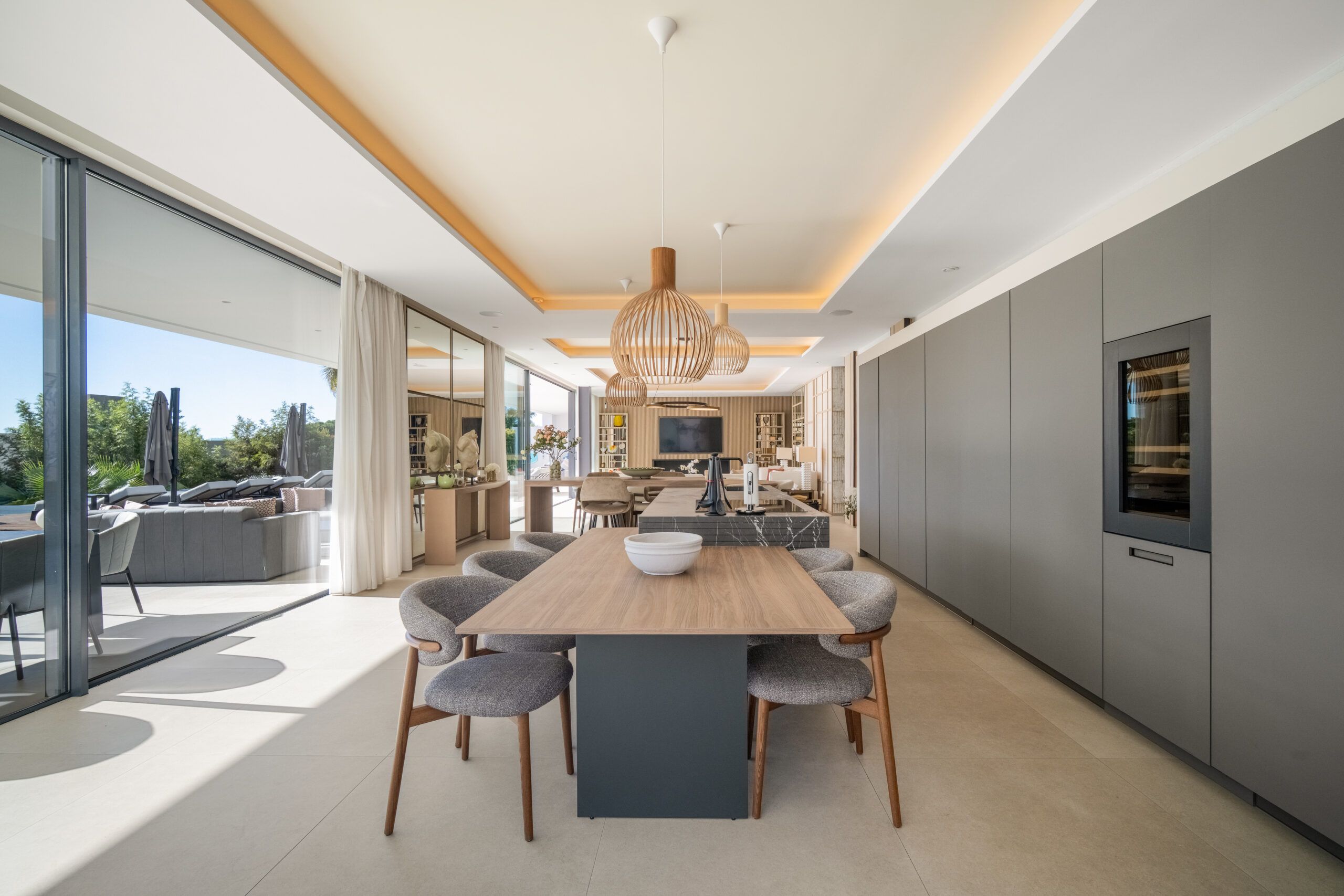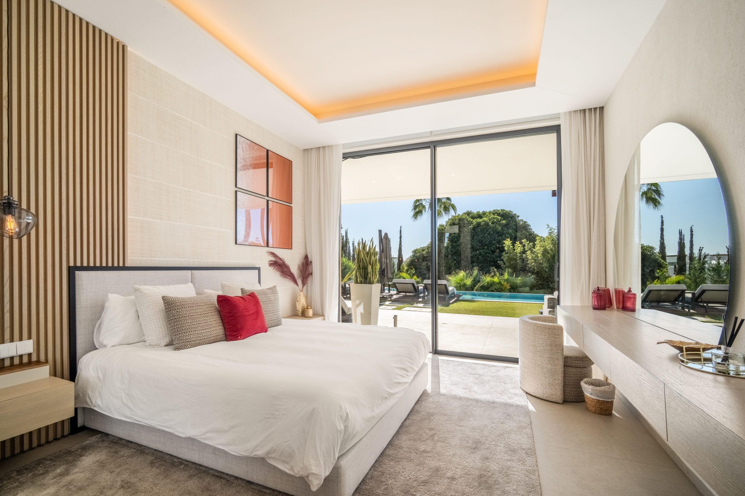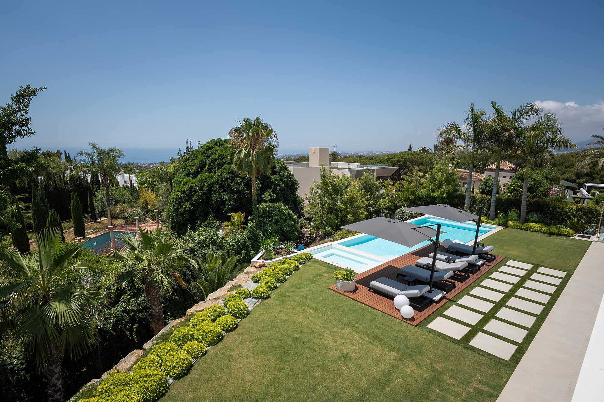 With 8 en-suite bedrooms and multiple spacious living areas, the property comfortably accommodates large groups, making it a perfect choice for family retreats or luxury gatherings. The villa’s thoughtful amenities — including a private sauna and gym, sleek contemporary interiors by AJ Flores, and round-the-clock concierge service — elevate your stay to resort-caliber comfort. Whether you’re lounging by the pool, entertaining on the terrace at sunset, or exploring Marbella’s beaches and nightlife just minutes away, Villa Mirage delivers an unforgettable blend of tranquility, style, and sophistication.