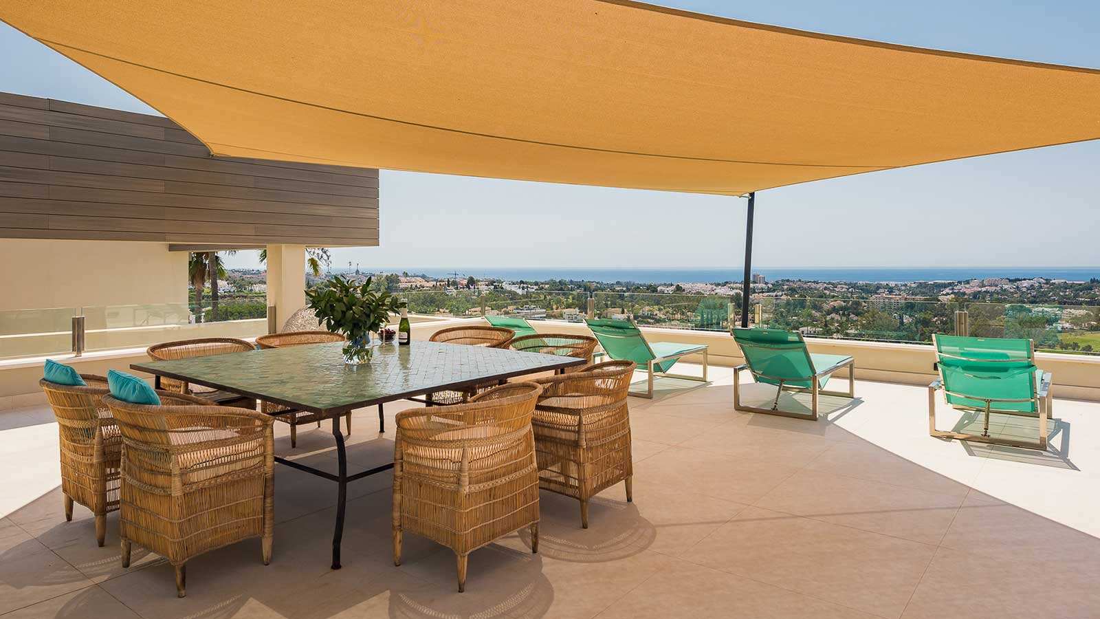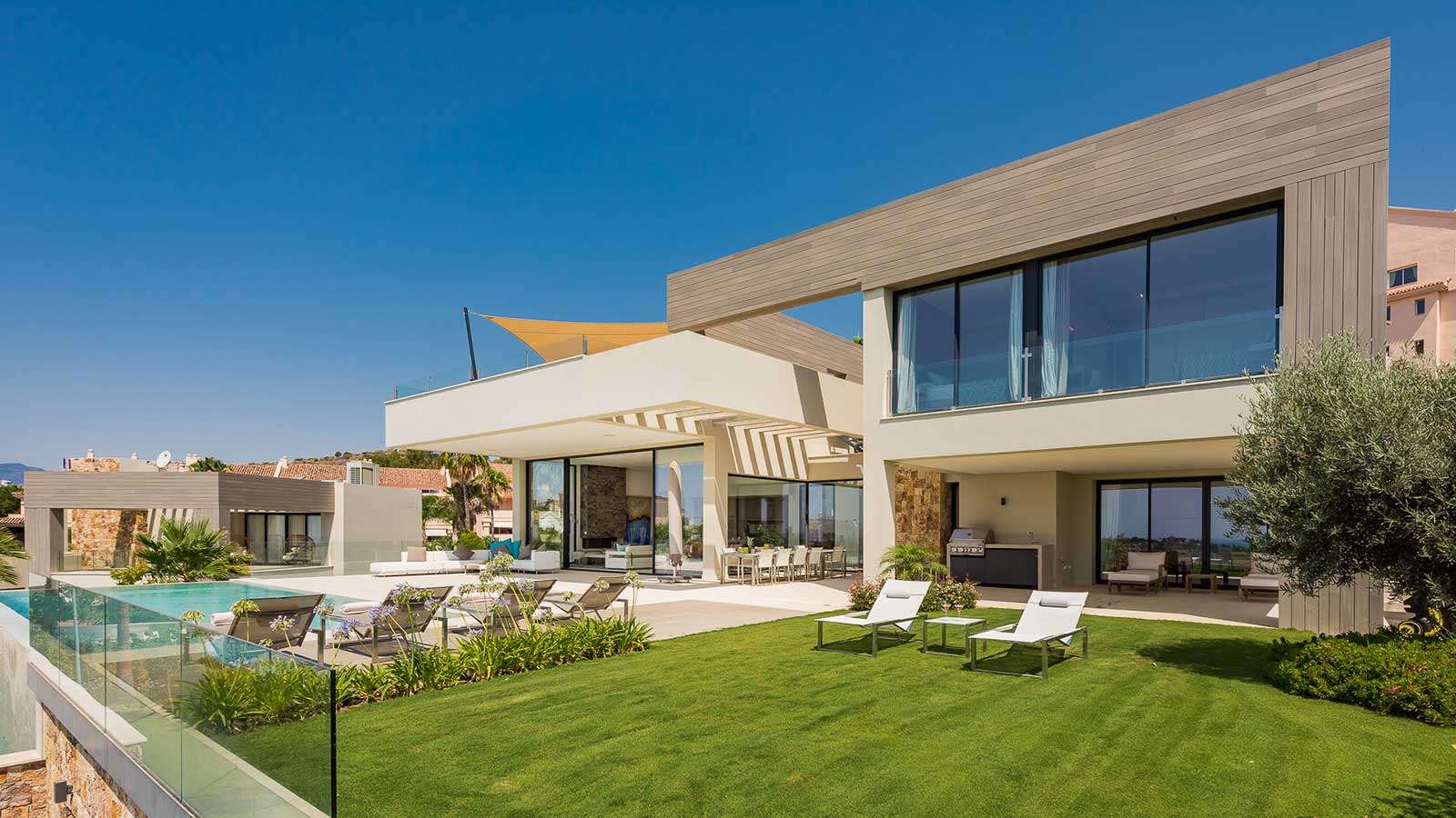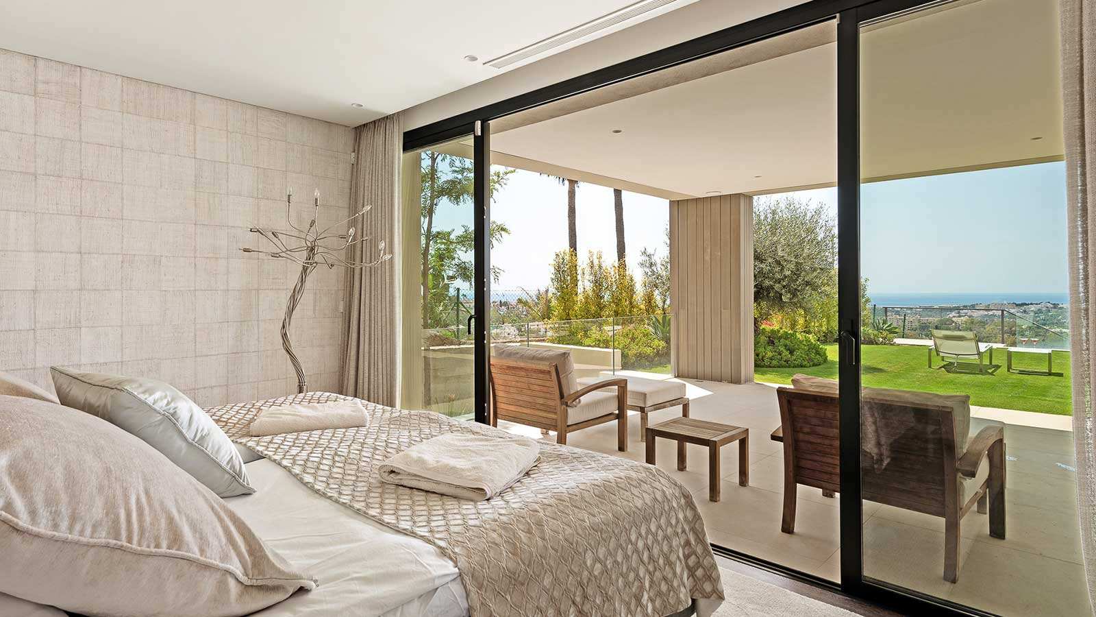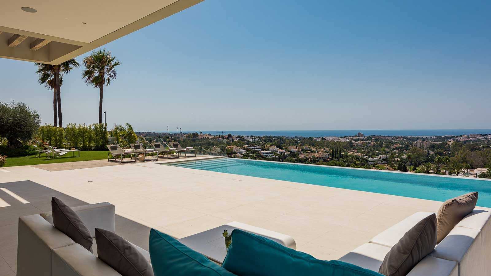 This exquisite villa is a breathtaking luxury retreat perched above the prestigious Golf Valley in Marbella’s Nueva Andalucía, offering guests a harmonious fusion of modern design and Mediterranean tranquillity. This exquisite 5-bedroom villa greets you with panoramic views stretching over verdant golf fairways to the shimmering Mediterranean Sea, creating a spectacular visual backdrop from the moment you step inside. The open-plan living space and high-spec Siemens kitchen flow effortlessly onto expansive terraces and a beautiful outdoor pool, inviting you to unwind in style. Every bedroom features en-suite bathrooms and plush bedding, while the thoughtful layout ensures that natural beauty and relaxation are always front and center.