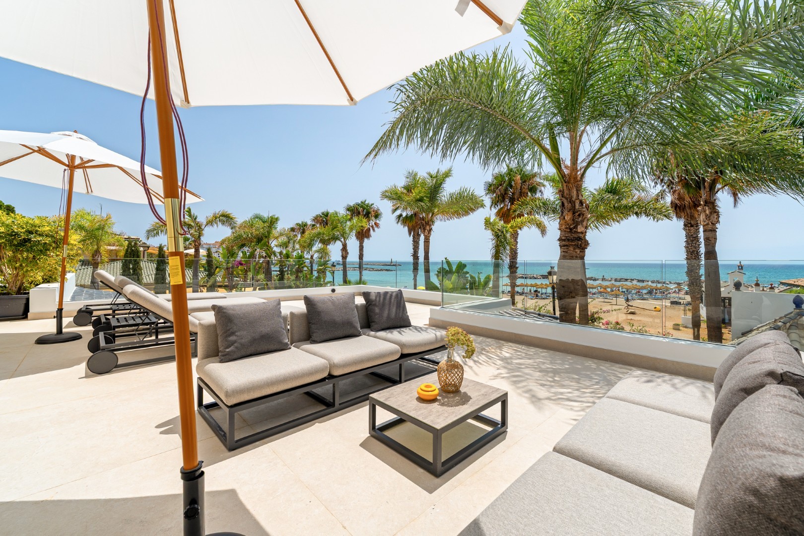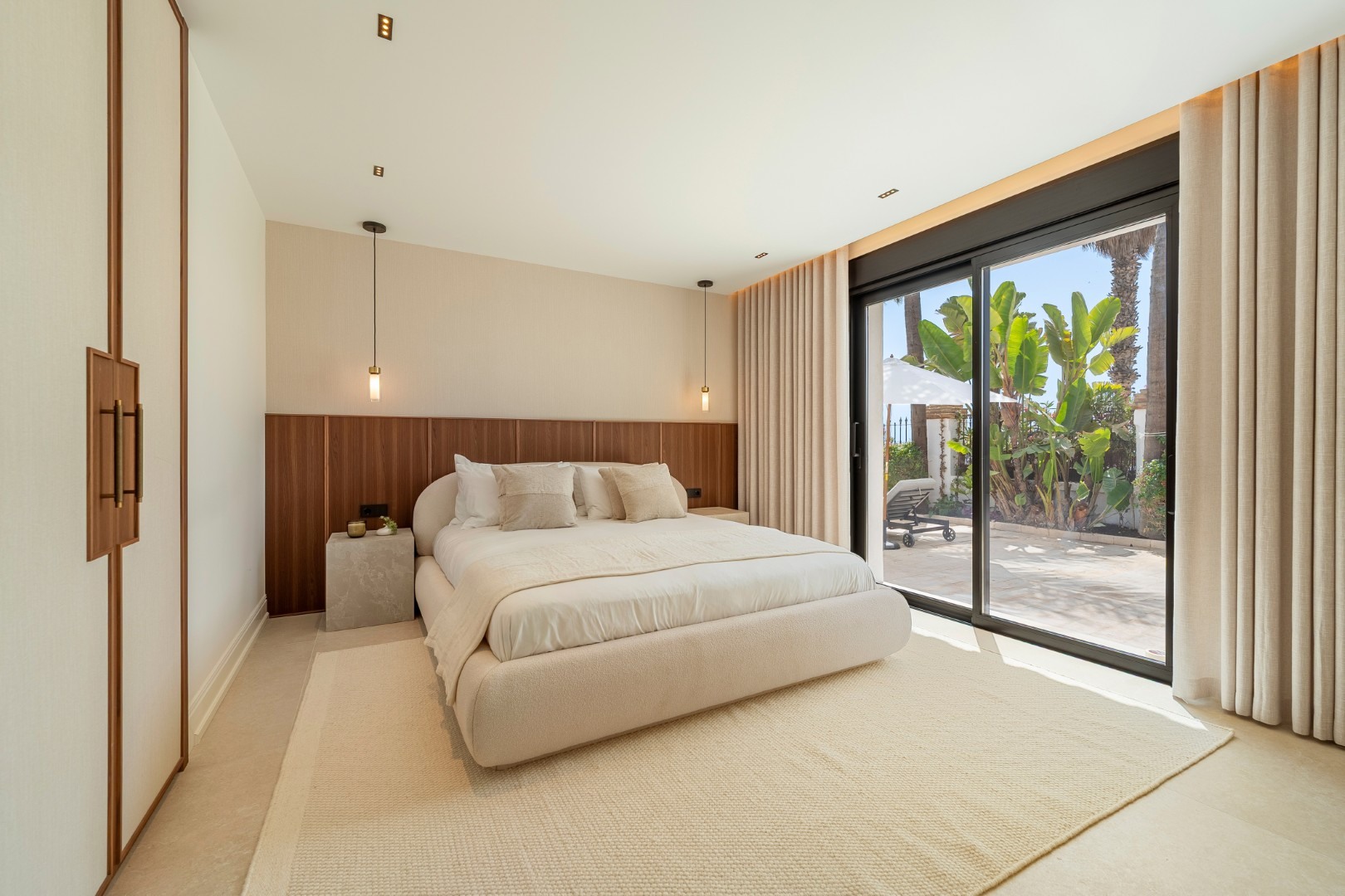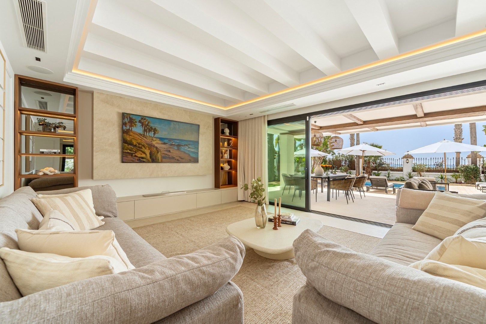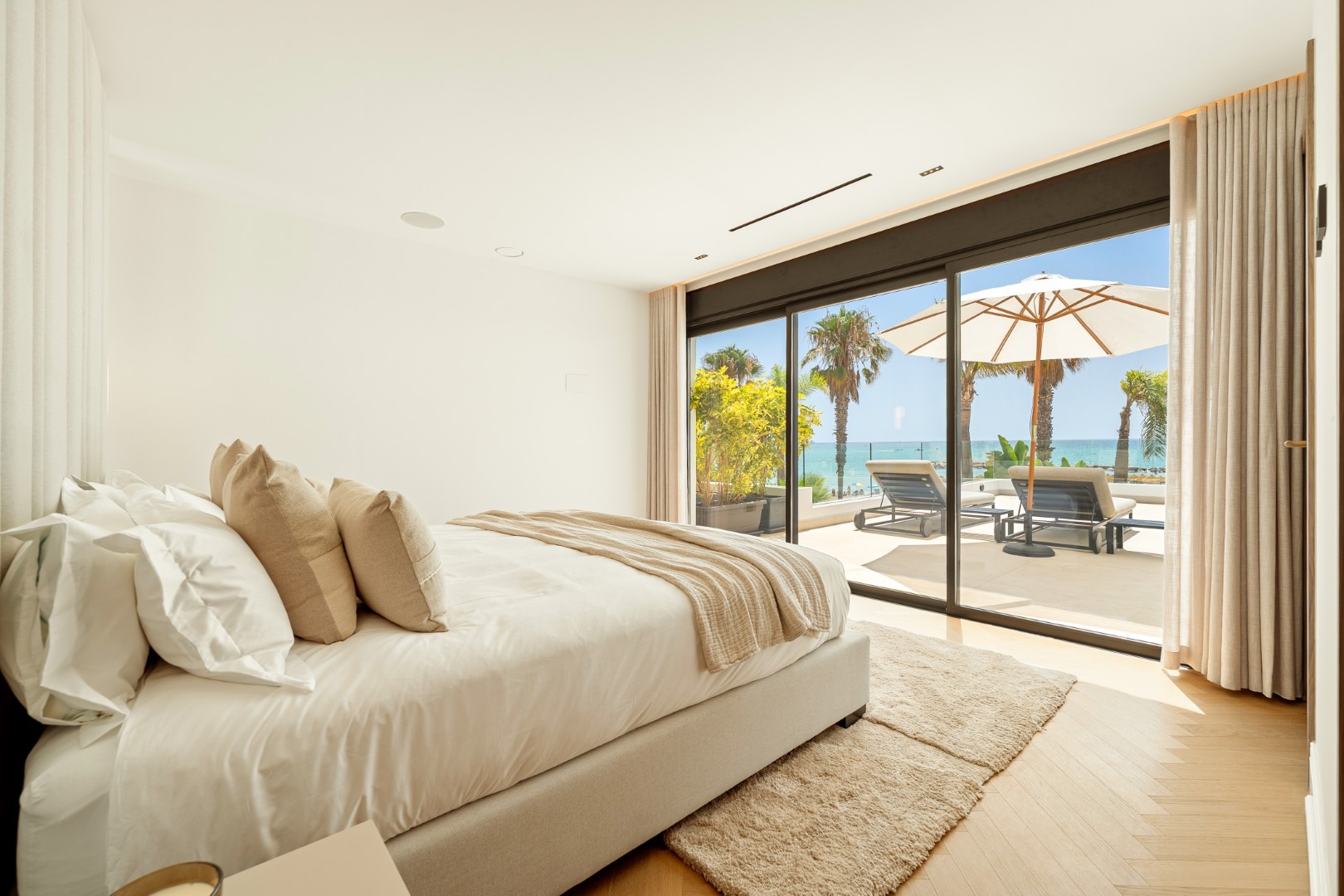 This villa is an extraordinary beachfront sanctuary nestled on one of the most prestigious stretches of Marbella’s coastline, offering unrivaled access to the Mediterranean Sea and sweeping ocean views that define luxury coastal living. Designed with an impeccable blend of timeless elegance and modern high-end style by renowned architect Aida Cohen, this six-bedroom estate immerses guests in a curated experience of comfort and sophistication. From the moment you step inside, the open-plan living spaces—with a statement fireplace, 75″ TV, and bespoke interiors—create an inviting atmosphere perfect for both relaxation and entertaining. Outside, the outdoor swimming pool, direct beach access, and private sea-facing gym with Eleiko equipment elevate the villa into a rare retreat where wellness, leisure, and breathtaking scenery converge.