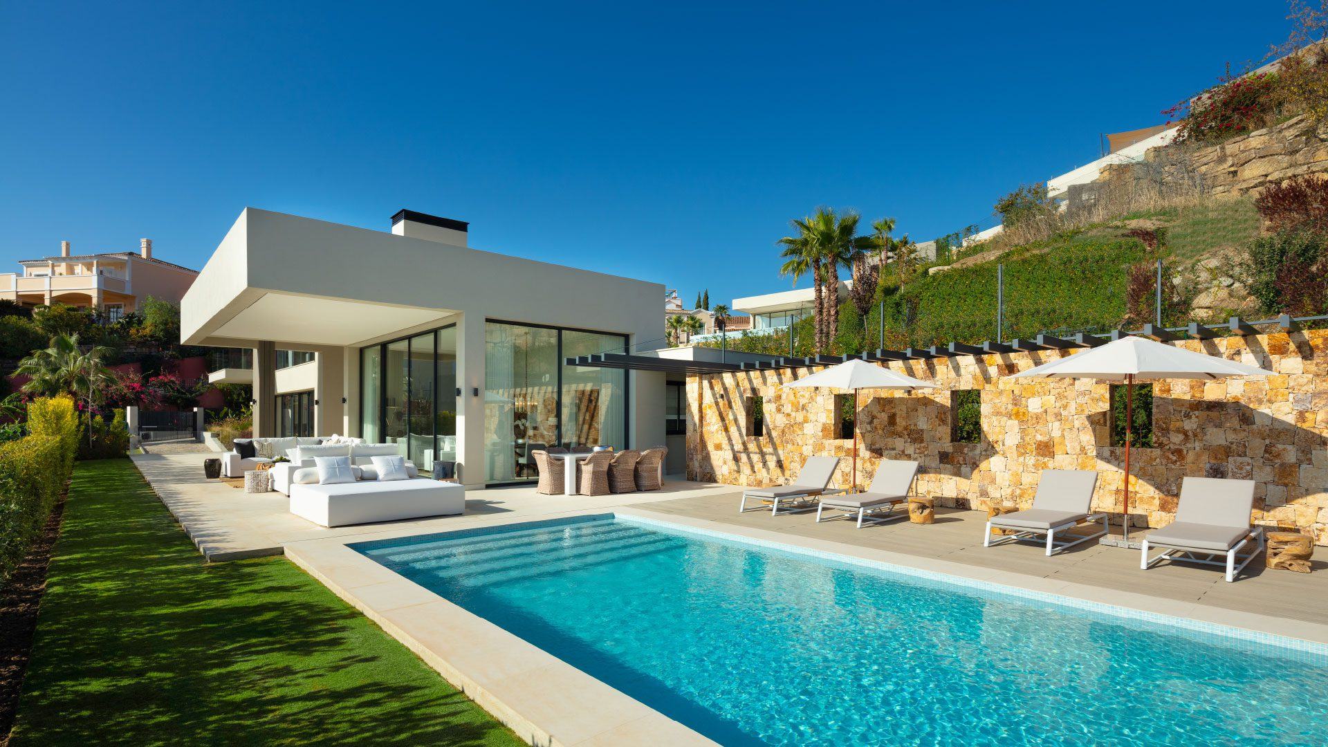 The villa’s setting captures the essence of Marbella’s best lifestyle — tranquil, yet conveniently close to Puerto Banús, the Golden Mile and world-class golf courses — making it ideal for families or groups who appreciate both social spaces and peaceful retreats. Wake up to heart-warming mountain vistas, stroll through minimalistic patios, and let the tranquility of Andalusian nature infuse your holiday with a serene sense of escape. Whether lounging on sun-drenched terraces, diving into refreshing waters, or hosting unforgettable evenings against Mediterranean backdrops, every detail at Villa Anamaya is crafted to leave you feeling refreshed, uplifted, and living the Marbella dream.