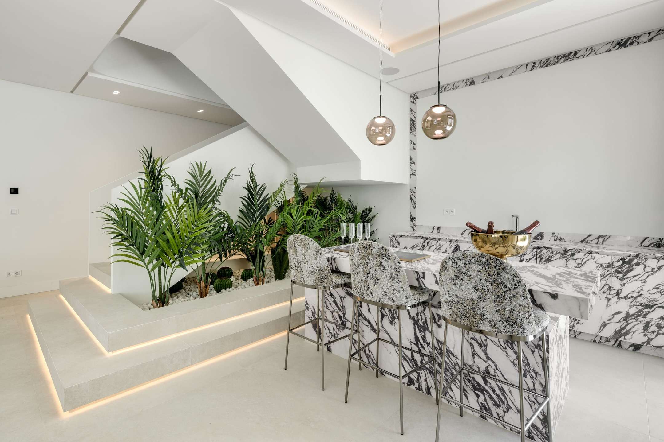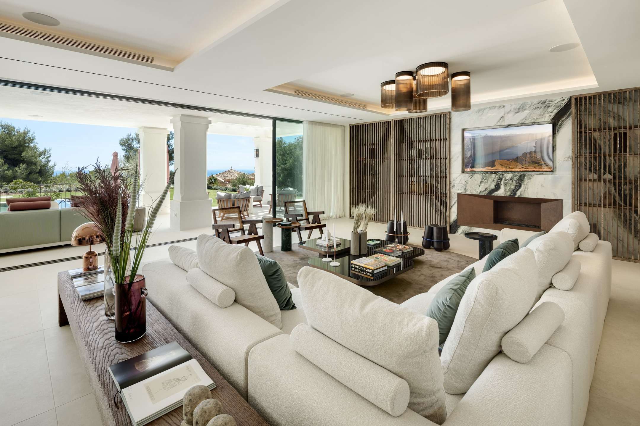 This luxury villa is breathtaking expression of contemporary luxury and Mediterranean elegance, perched in the exclusive gated enclave of Sierra Blanca on Marbella’s iconic Golden Mile. Designed by award-winning architects and set on a sprawling 2,574 m² private estate, this villa captivates with sweeping panoramic views of the sparkling Mediterranean and the majestic La Concha mountain. Every space is flooded with natural light from floor-to-ceiling windows that blur the lines between indoor comfort and outdoor splendor, leading effortlessly to expansive terraces where al fresco dining, sunset lounging, and serene mornings await. The terraced outdoor area features a pristine swimming pool surrounded by lush gardens, offering an idyllic setting for sun-soaked relaxation.