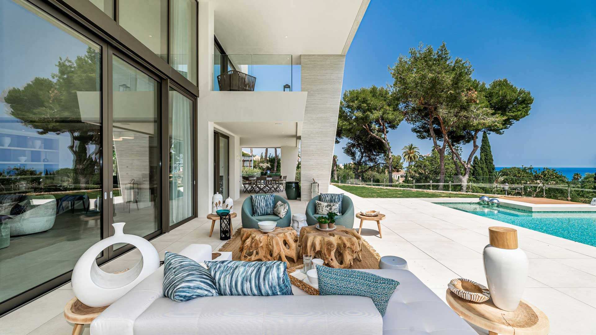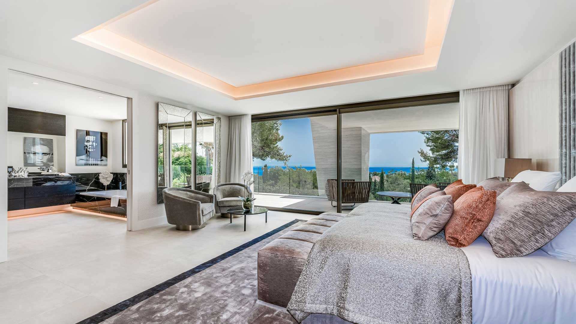 This property is a breathtaking modern masterpiece nestled in the prestigious, gated community of Sierra Blanca—often likened to the “Beverly Hills of Marbella.” With dramatic contemporary architecture that blurs the line between indoor and outdoor living, this villa captivates from the moment you arrive. Floor-to-ceiling glass frames uninterrupted panoramic views of the Mediterranean Sea and La Concha mountain, while expansive terraces and lounges create an atmosphere of effortless luxury. Inside, the villa’s sleek minimalist design complements generous living spaces, including a vast lounge with double-height ceilings, a rooftop pergola with seating for 14 and a chargrill, and an automated smart home system that lets you control lighting and climate at the touch of a button.