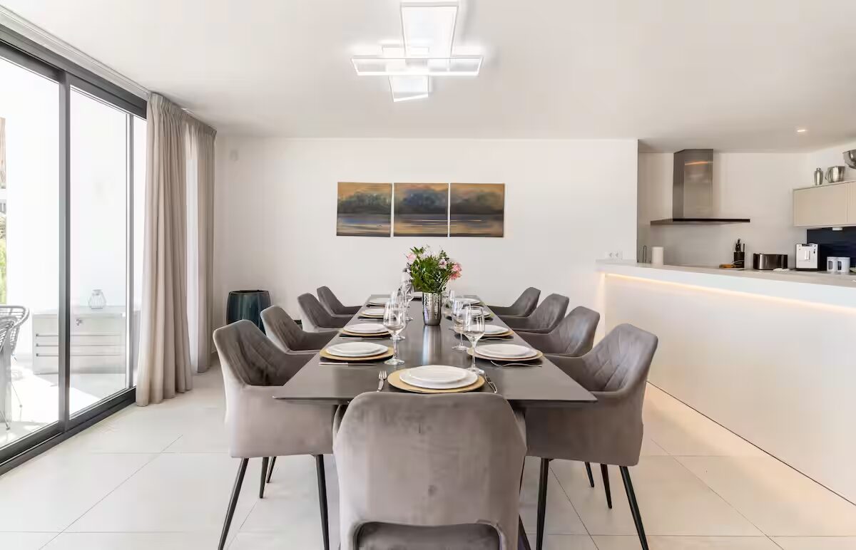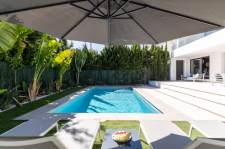 This stunning luxury villa in the prestigious Guadalmina Alta area of Marbella offers an unforgettable Mediterranean retreat for families or groups seeking style, comfort, and indulgence. Designed with contemporary elegance and premium finishes, the villa features gorgeously styled living spaces filled with natural light that effortlessly blend indoor and outdoor living. Expansive floor-to-ceiling glass doors open onto terraces and gardens, while the interiors boast plush seating areas, a large dining space, and a fully equipped kitchen perfect for both casual gatherings and unforgettable dinner parties. Each of the five luxurious bedrooms provides peaceful sanctuary with ensuite bathrooms and access to private sun-drenched terraces—ideal for savoring morning coffee or evening cocktails against serene views.
