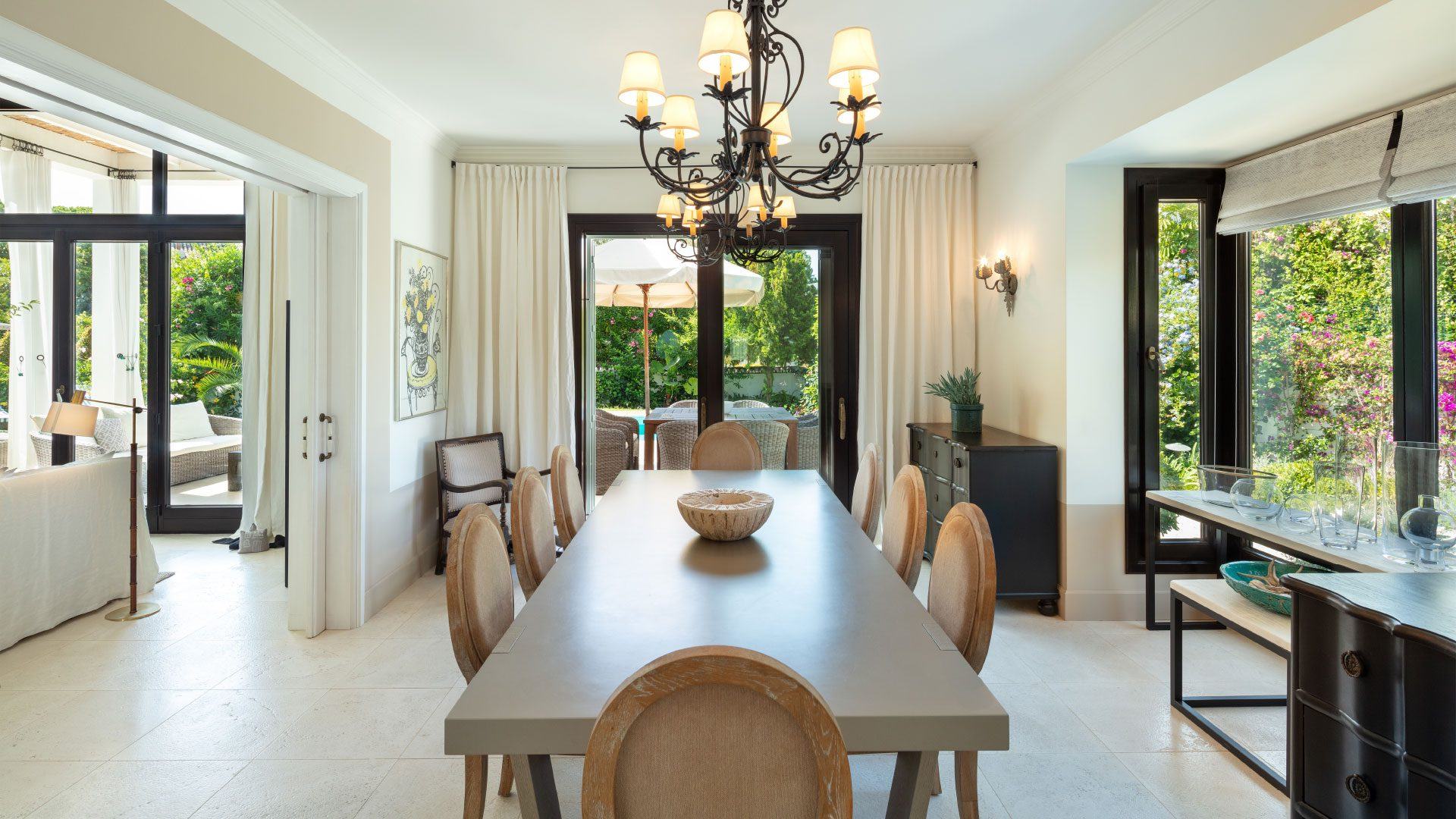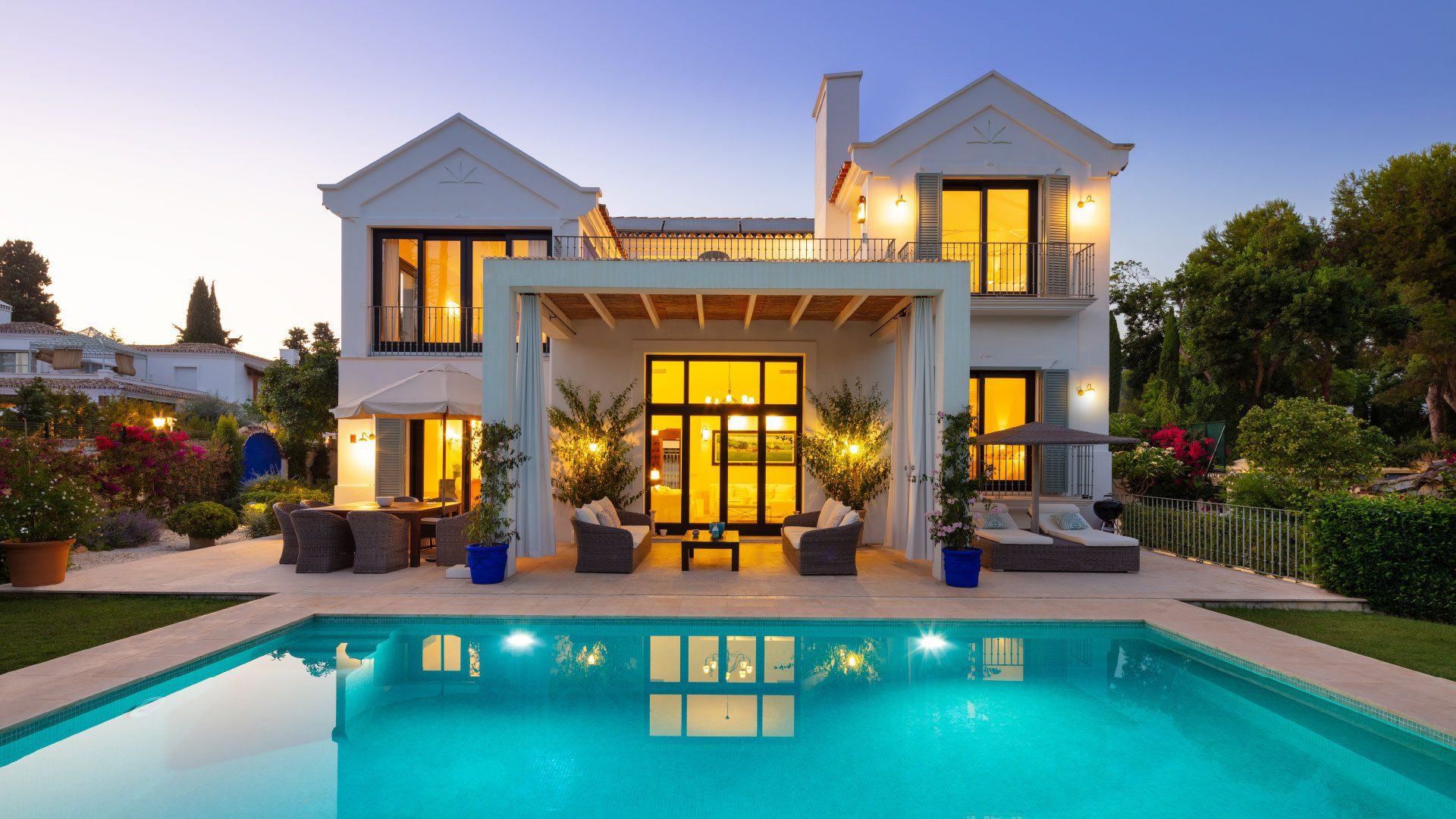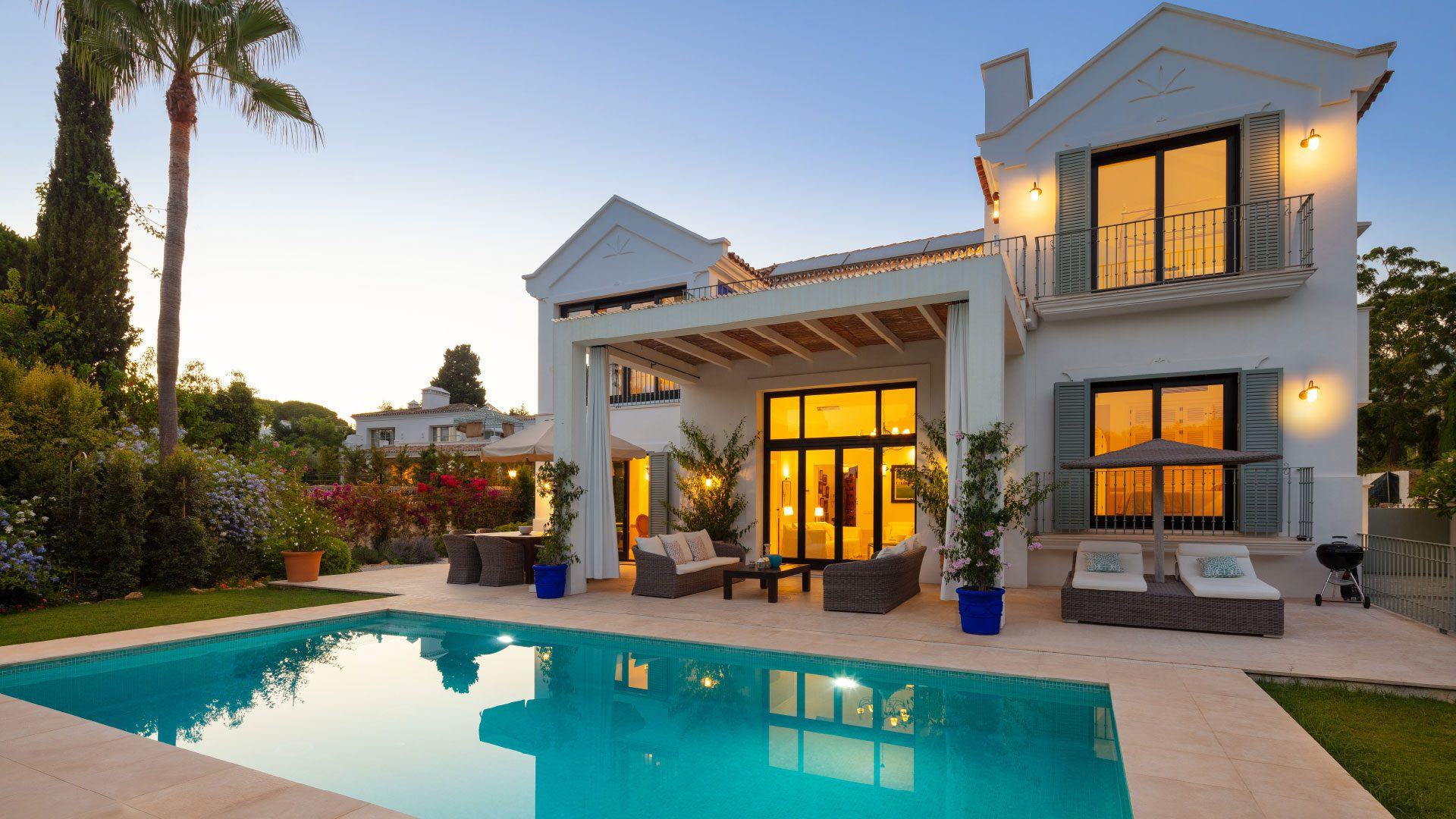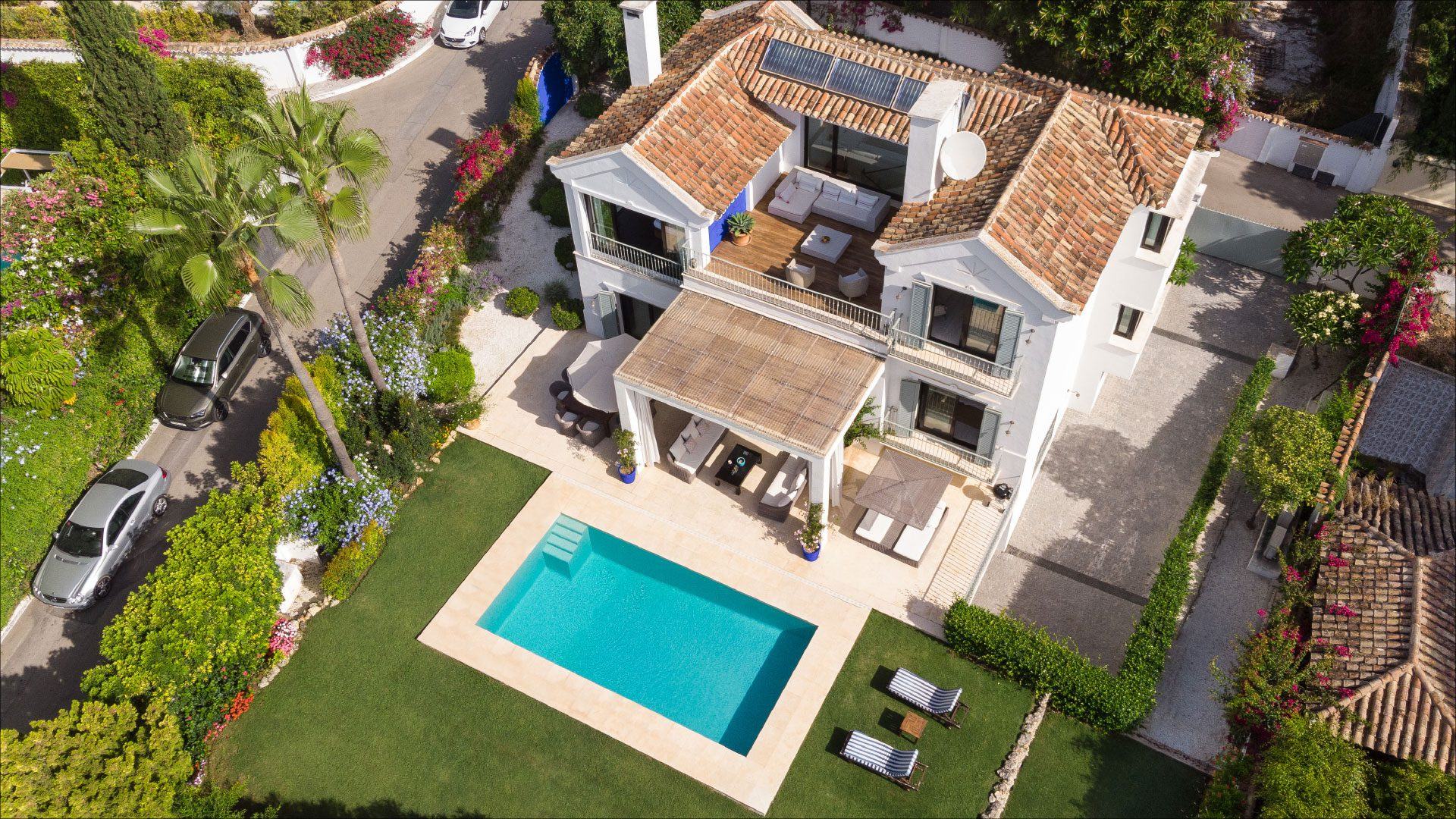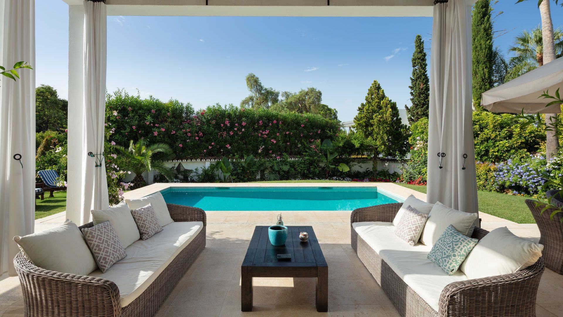 This stunning villa is a beautifully refurbished luxury villa tucked away on the prestigious Golden Mile in Marbella’s Marbella Club area, just a short stroll from the beach. This elegant 5-bedroom property blends classic charm with modern comforts, offering spacious indoor living areas with creamy, inviting décor and a fully equipped kitchen perfect for social gatherings. Lush gardens, sun-drenched terraces and a private outdoor pool — which can be heated in the cooler months — create an idyllic setting for relaxation and al fresco dining. Although privately owned, its close proximity to the iconic Marbella Club gives guests easy access to renowned pools, fine dining, and vibrant terraces, with room service and attentive concierge support available via Swish.